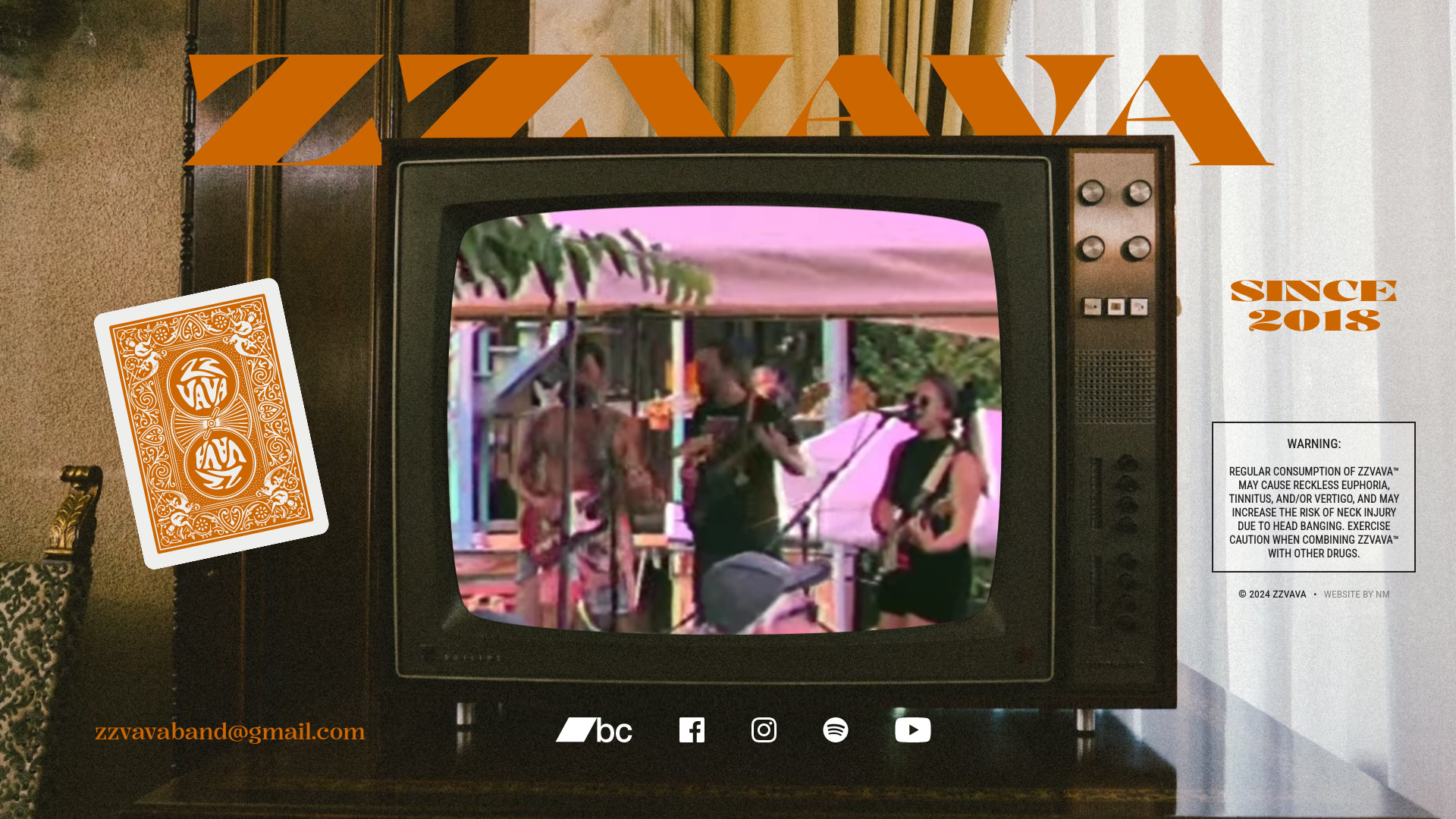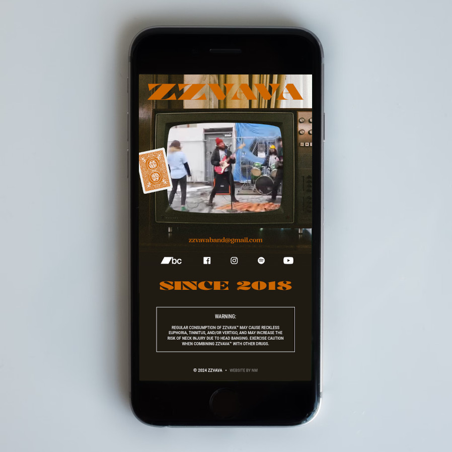 I built a single-page microsite showcasing the group's live performance video reel, social media links, and fun extras in a cozy retro style.
